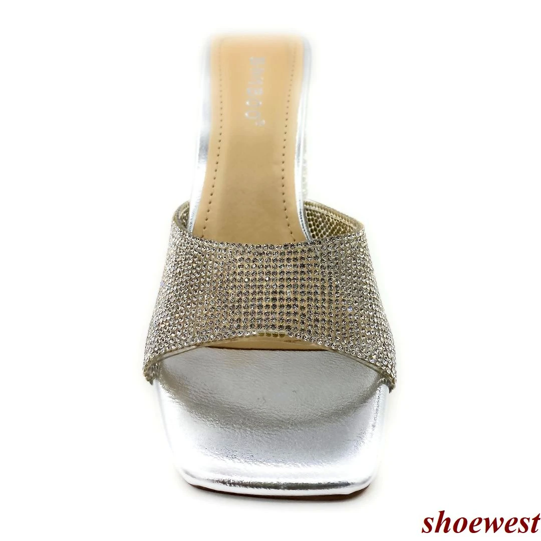 Bamboo Rhinestone Block Triangle Heel open-toe stylish sandal