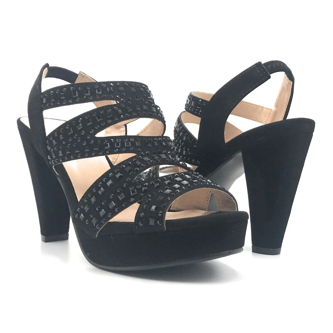 - Finished with a slightly padded faux leather insole. Rhinestone dress heels sandals
