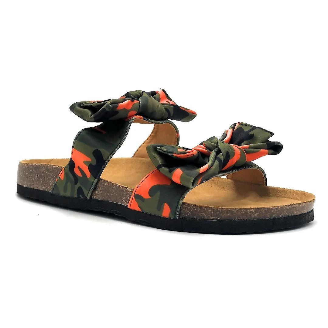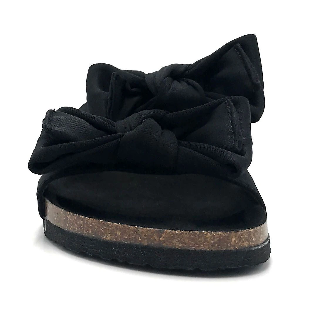 Liliana Tie and Die double strapped bowed slip ons For Summer and Beach Parties