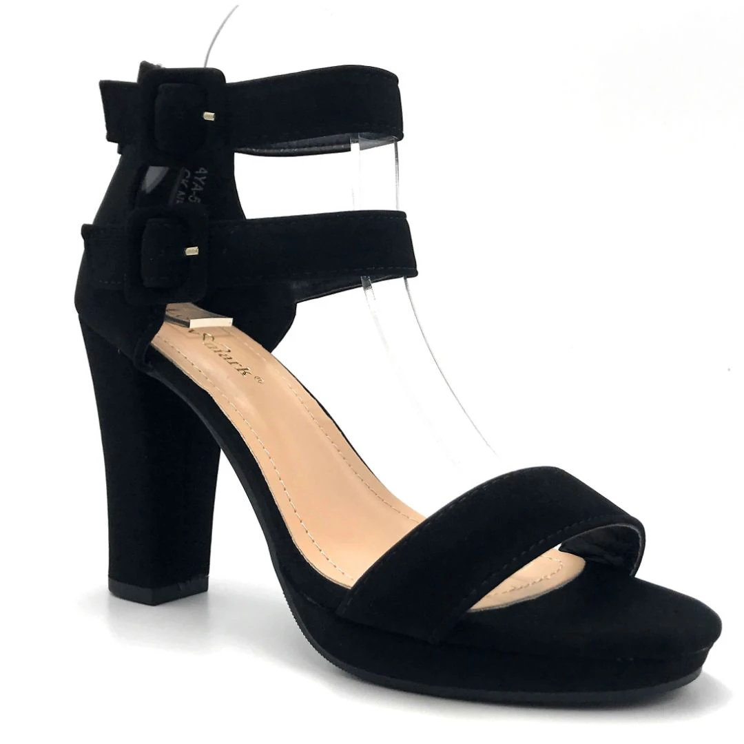 - Features an open toe, Double ankle strap with buckle closure With Back Zipper, chunky high heel and low platform