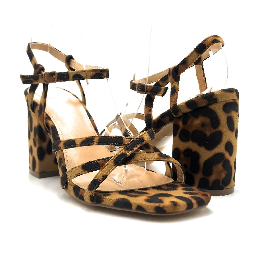 - Raise your slinky sandals up a notch with this smooth heel detailed by crisscrossing straps and a block heel that punctuate your modern taste.