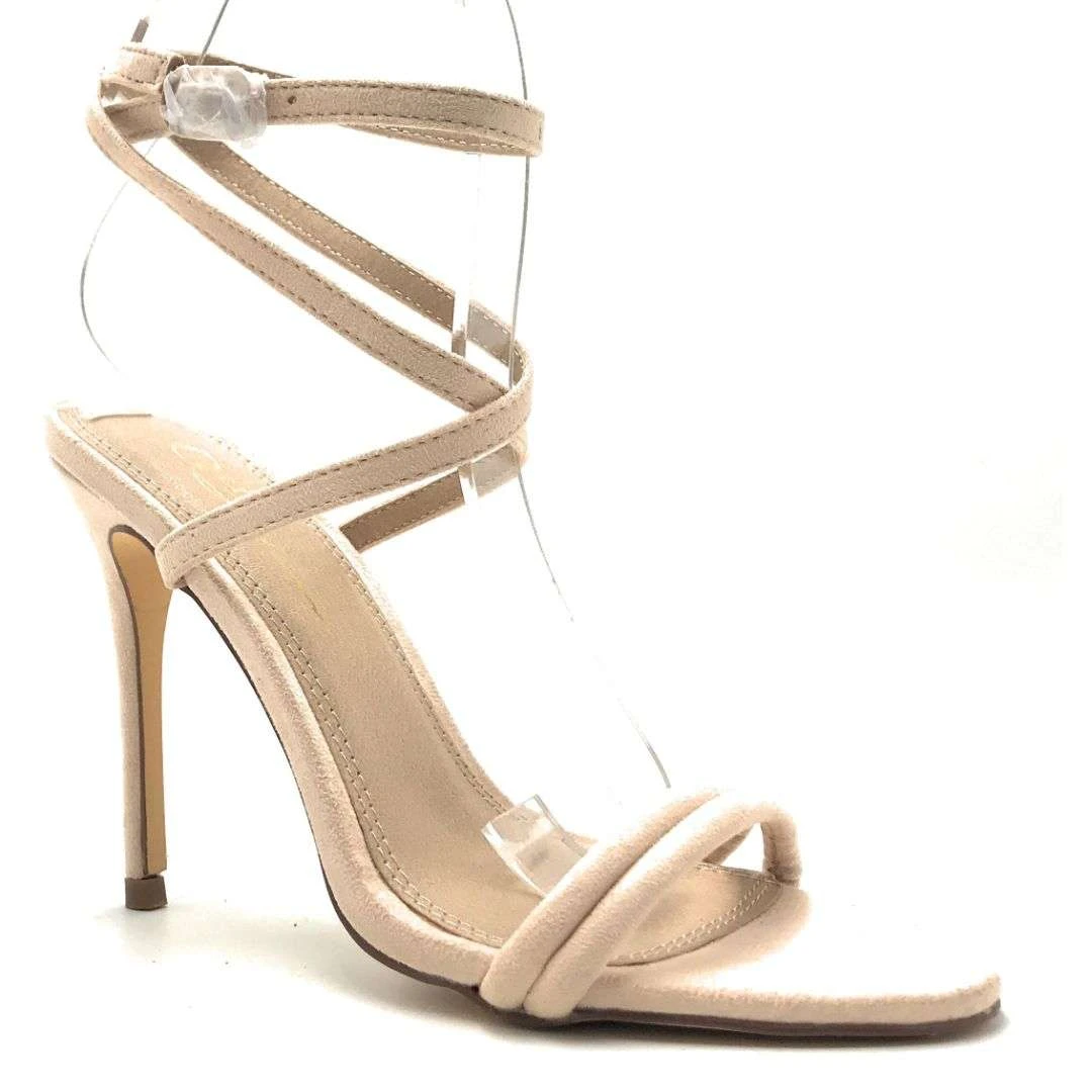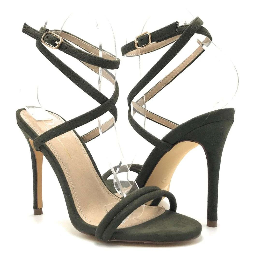 Olivia Jaymes High Heel Open Toe Adjustable Ankle Buckle Strap Suede Material Evening Sexy Stiletto Fashion Shoes
