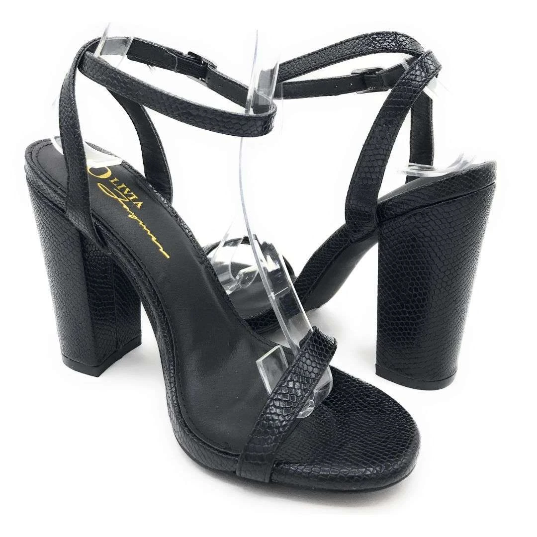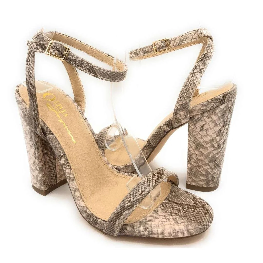 Olivia Jaymes High Block Heel Snake Pattern Open Toe With Round Buckle Strap For Women