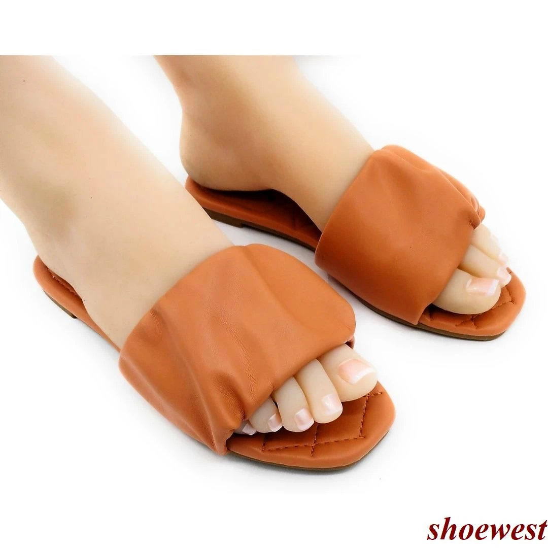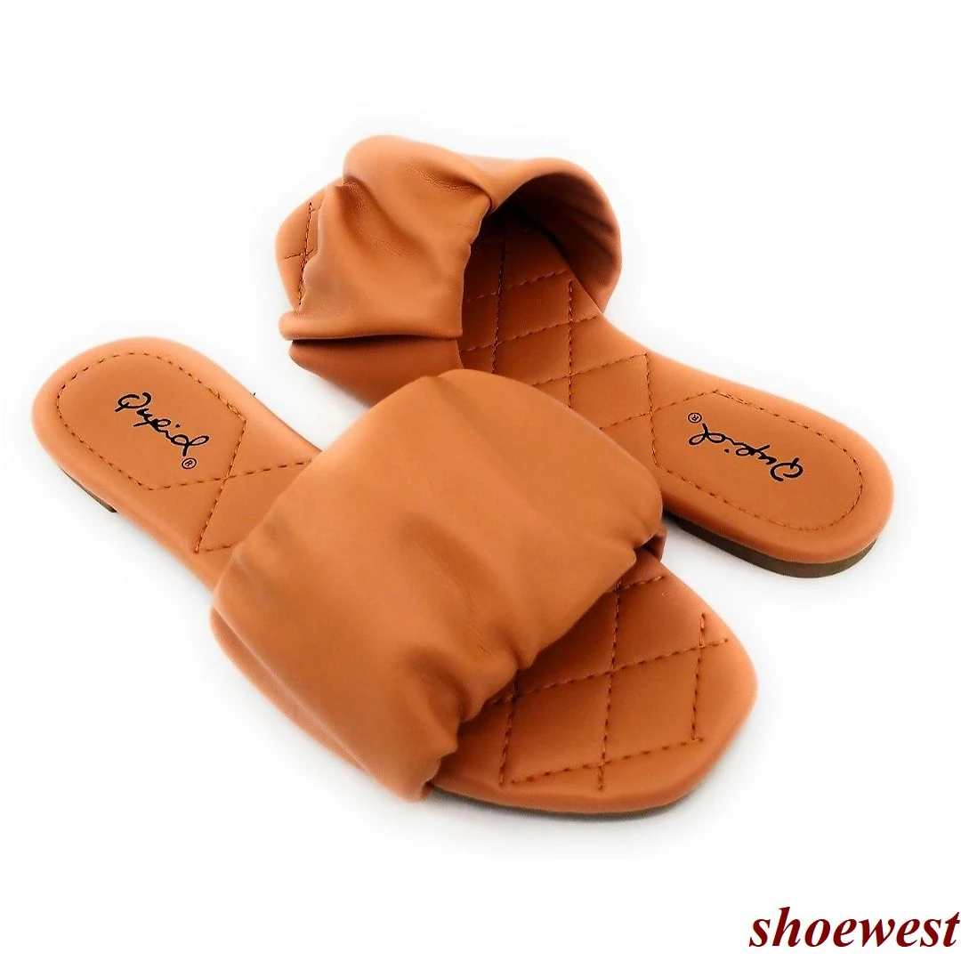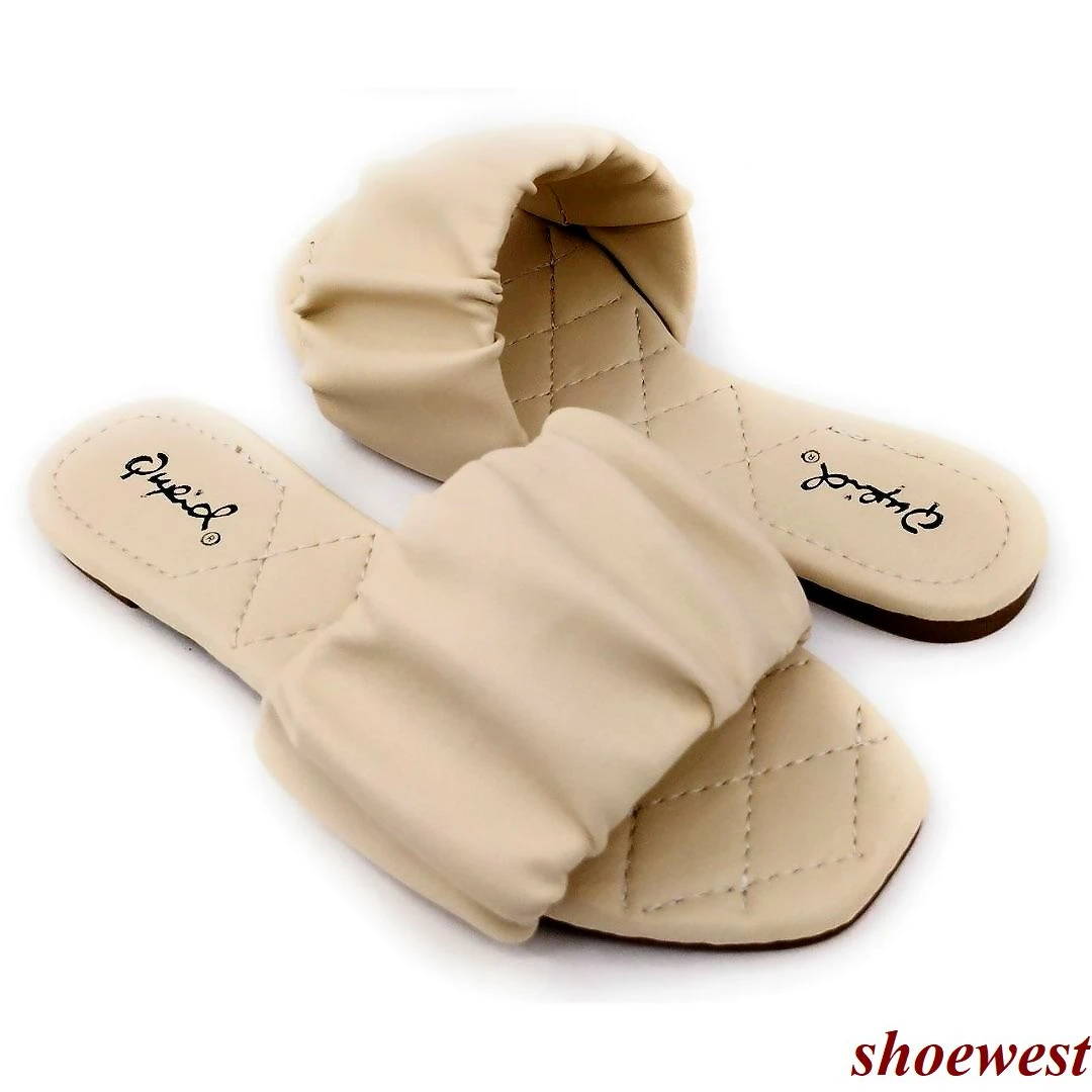Qupid Stretchable Wide Band Flat Sandals